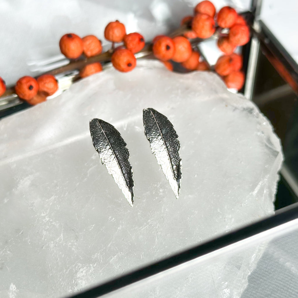 Silver Rowan Leaf Stud Earrings E2006