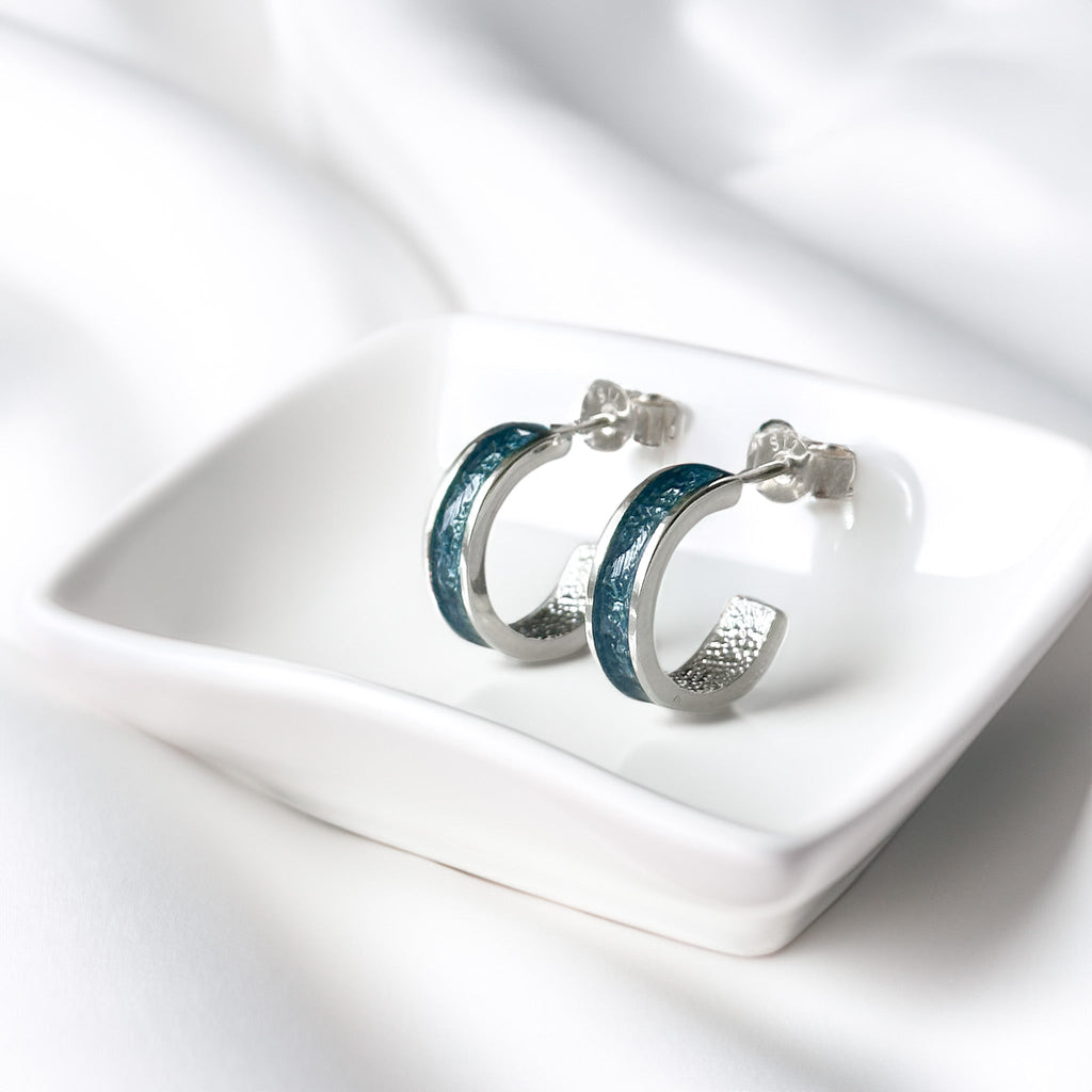 Crafted in solid sterling silver and set with beautiful stormy blue grey enamel, these beautiful earrings will make a wonderful addition to any jewellery collection.