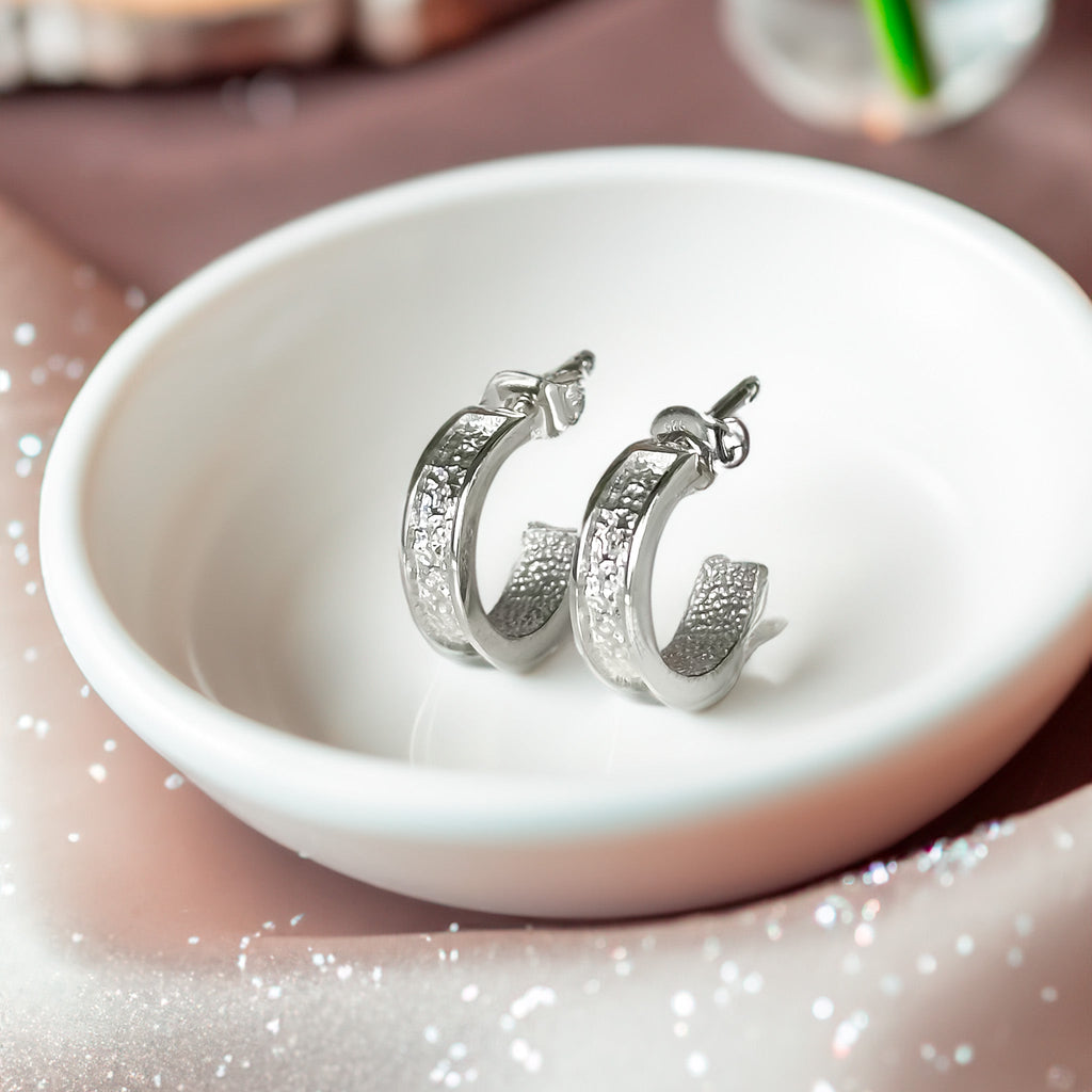 Contemporary, simple shimmering 'Stardust' huggie style hoop earrings, designed to gently hug the earlobe for ultimate comfort and style.
