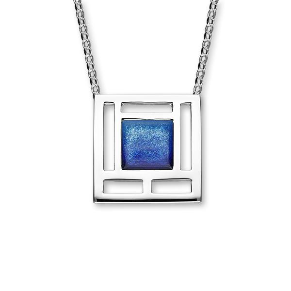 This elegant pendant is crafted in sterling silver and complemented with hot glass enamel. The design is inspired by the works of American architect Frank Lloyd Wright - the design source is the Playroom Art Glass Window inside the Frank Lloyd Wright Home and Studio in Illinois.