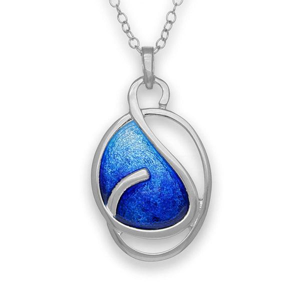 A sophisticated swirl shaped pendant, crafted in Sterling Silver and brought to life with Hot Glass Enamel in the colourway Oasis - also available in 9 other colourways.