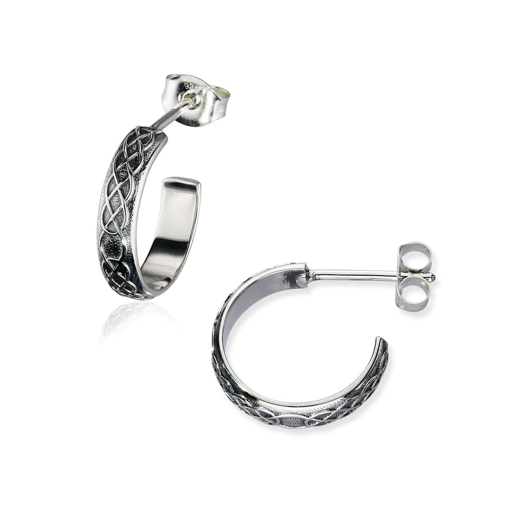Infused with timeless symbolism, these sterling silver huggie hoop earrings feature intricate Celtic knotwork. Compact yet striking, their snug-fitting design offers everyday comfort while adding a touch of heritage elegance. A perfect blend of ancient artistry and modern style, these earrings bring meaning and sophistication to any look.