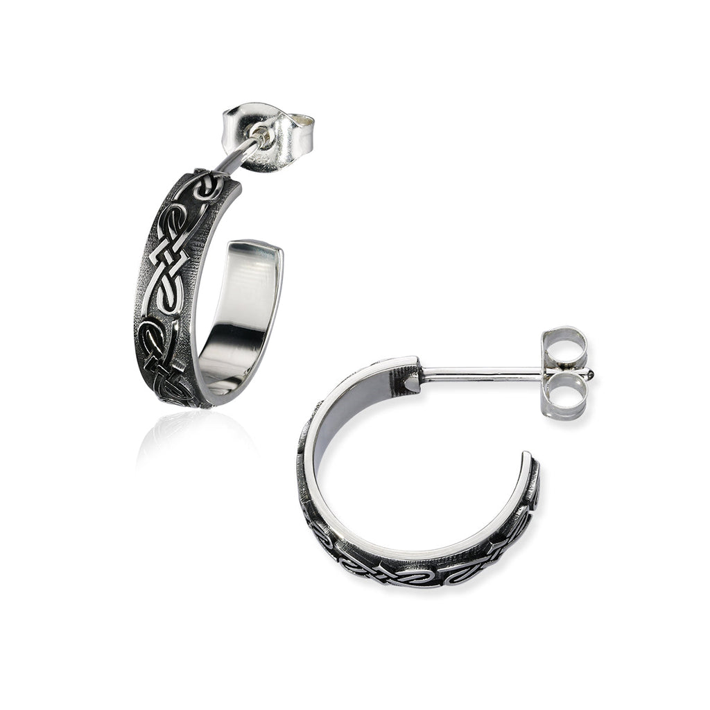 Infused with timeless symbolism, these sterling silver oxidised huggie hoop earrings feature intricate Celtic knotwork. Compact yet striking, their snug-fitting design offers everyday comfort while adding a touch of heritage elegance. A perfect blend of ancient artistry and modern style, these earrings bring meaning and sophistication to any look.