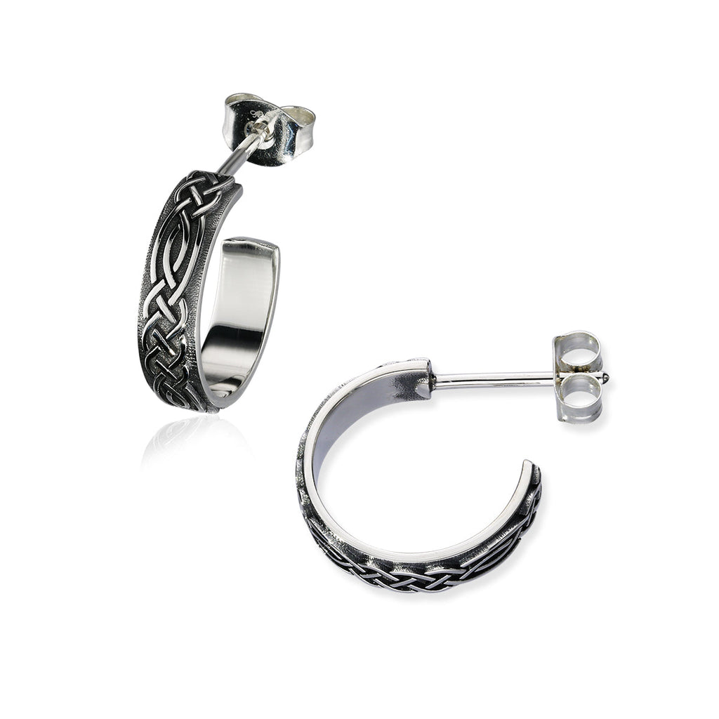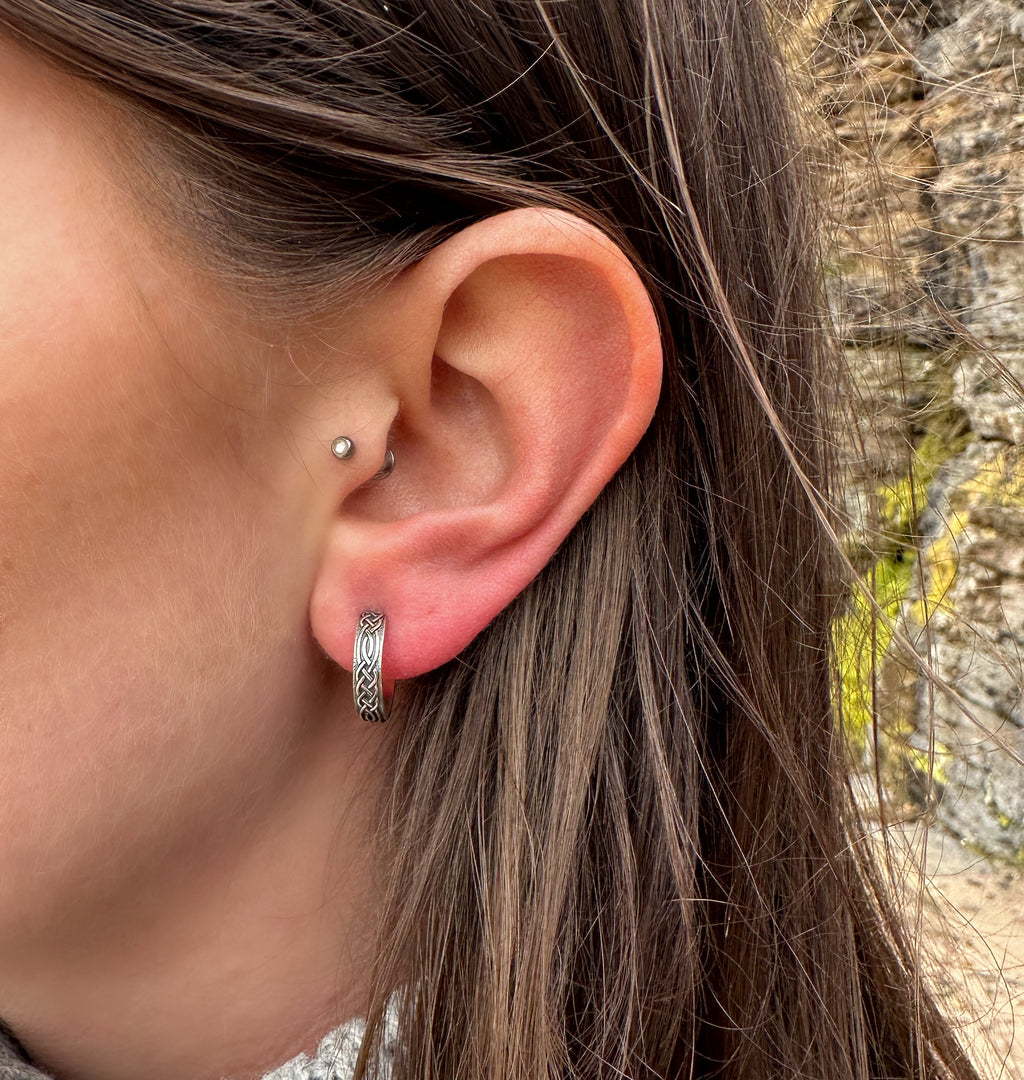 Infused with timeless symbolism, these sterling silver oxidised huggie hoop earrings feature intricate Celtic knotwork. Compact yet striking, their snug-fitting design offers everyday comfort while adding a touch of heritage elegance. A perfect blend of ancient artistry and modern style, these earrings bring meaning and sophistication to any look.
