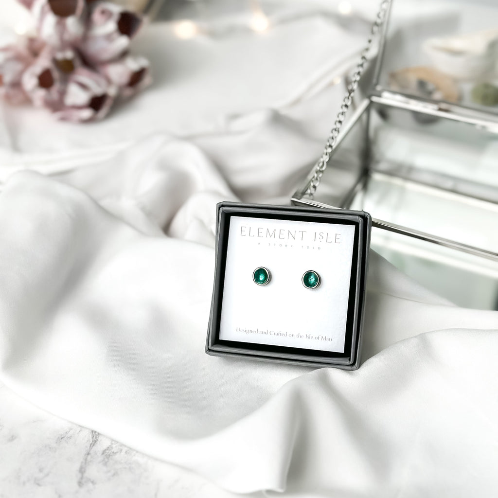 Each pair has been lovingly handcrafted in recycled silver, then accented with 'Lost Forest' deep green enamel.
