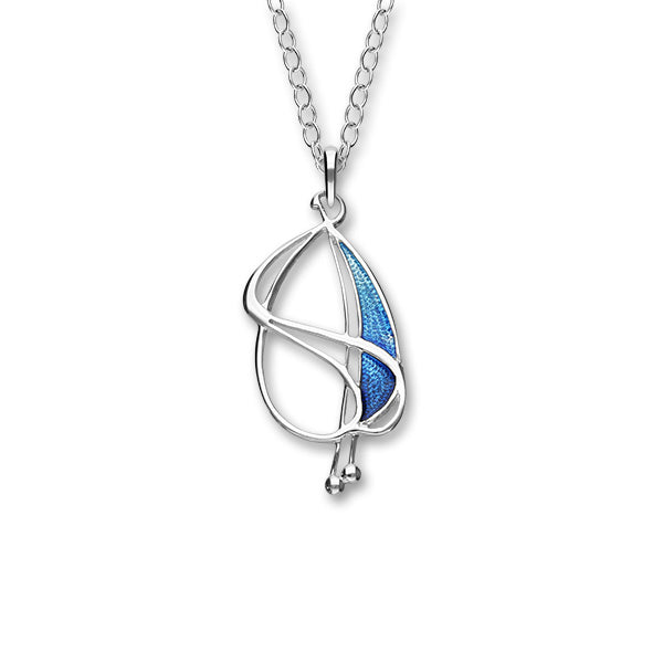 This delicate drop pendant from the original 'Pat Cheney' collection is hand enamelled in the stunning colours of Midnight Sapphire.
